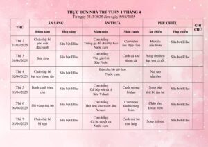 Trường Mầm non Phong Lan kính gửi đến Cha mẹ học sinh thực đơn tuần 1 tháng 4/2025